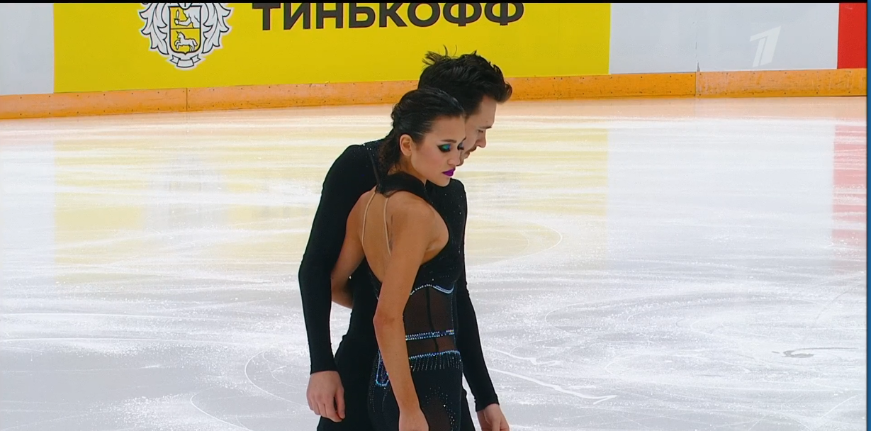 Элвис Пресли зазвучал в зале! Под Тrouble, Can't Help Falling in Love разорвали лед Дима и Настя, которых Максим Траньков назвал по-хорошему наглецами! Все элементы ультра-си были исполнены в плюсовой зоне, отличный старт сезона для молодой пары!