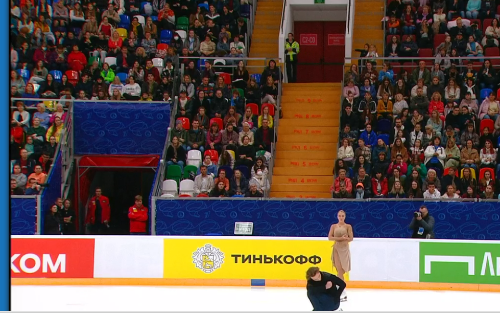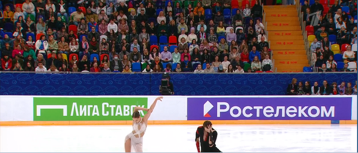 В интересной обработке Moby катались фигуристы — чистенько, аккуратненько и нежно. Наверное, одна из самых позитивных по атмосфере постановок тренерского штаба под Павла Слюсаренко, зал очень бурно реагировал на их поддержки и параллельные прыжки. «Молодцы, молодцы!» — вот так провожают спортсменов болельщики.