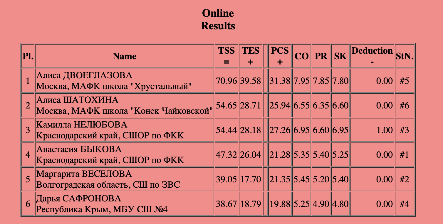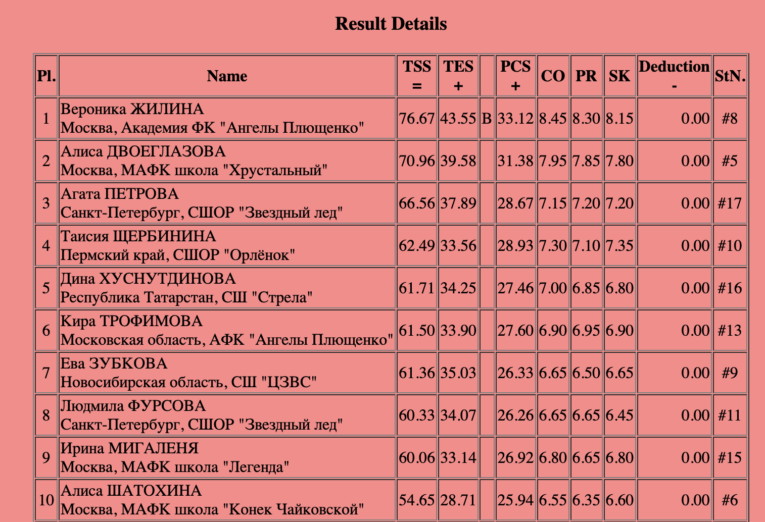 Вот такими получились соревнования у девушек уровня КМС на этапе Гран-при «Бархатный сезон». Лидирует после короткой программы ученица Евгения Плющенко Вероника Жилина. Спасибо, что были с нами, и до новых встреч.