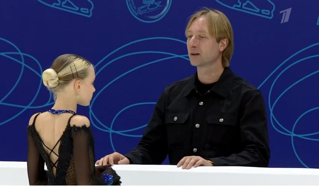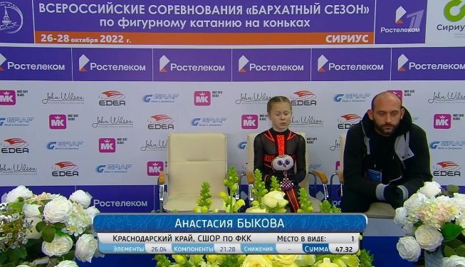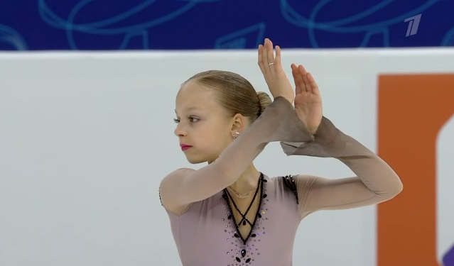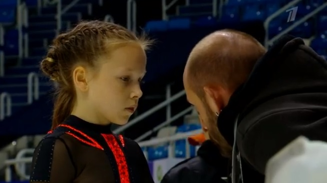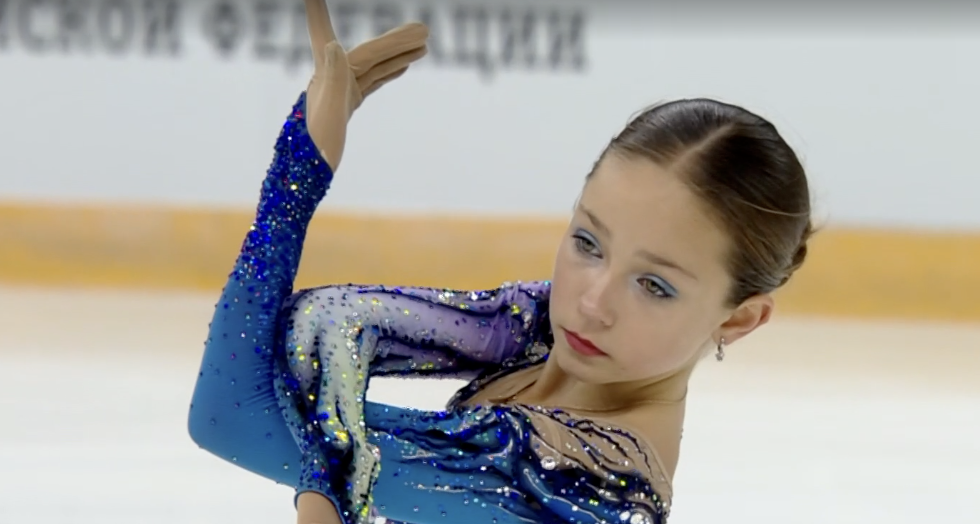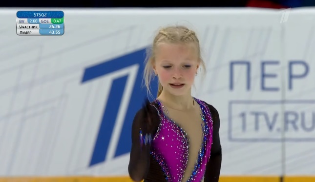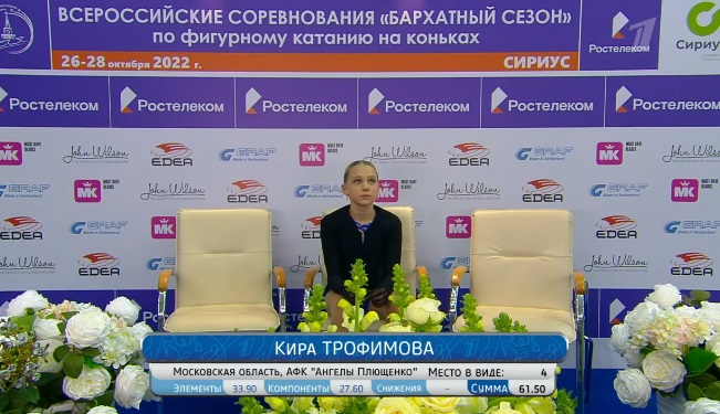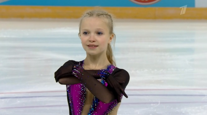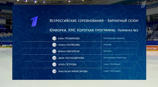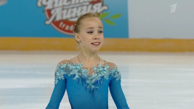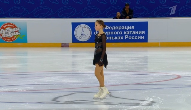 Кира Трофимова выступает в третьей группе первой. Это еще одна ученица Евгения Плющенко. Она из Московской области.