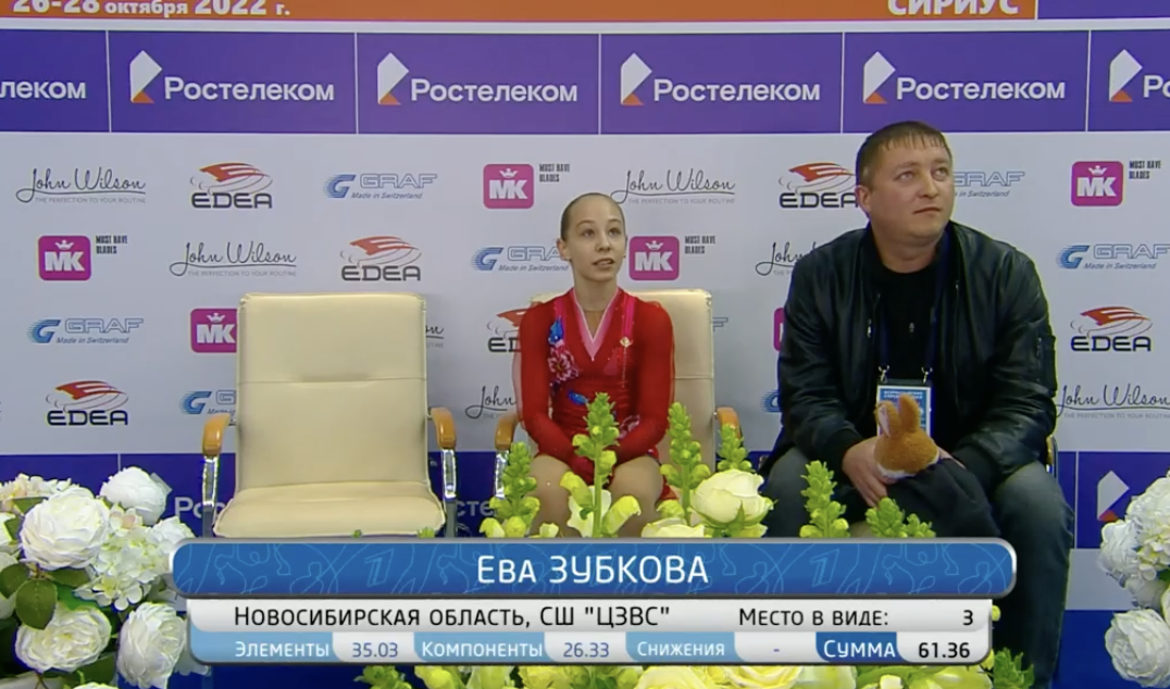Следующей выступает Ева Зубкова из Новосибирской области. Она катается под саундтрек к фильму «Мемуары гейши».