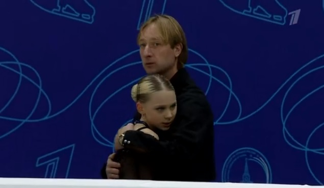 «Молодец!» — говорит своей ученице Плющенко и подбадривает ее похлопыванием по руке.