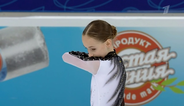 Тройной риттбергер исполнила чисто, как и двойной аксель. Отвращалась на четвертый уровень и затем во второй части программы выполнила каскад 3 лутц + 2 тулуп. Тулуп, правда, должен был быть тройным, но не докрутила. Зато вращалась и дальше на четвертый уровень.
