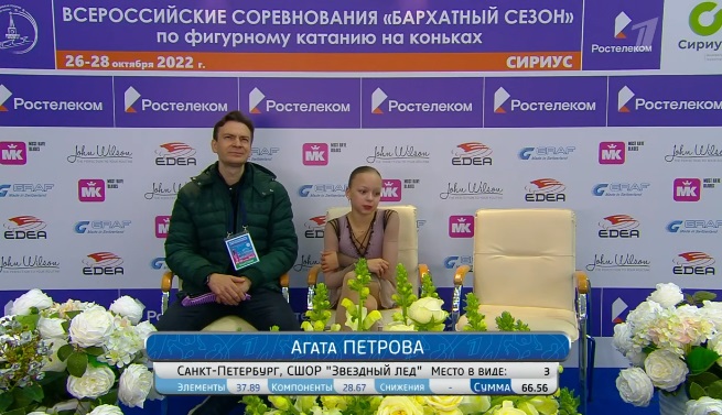 Следующей выступает Таисия Щербинина из Пермского края. Она катается под драматичную «Песню маленького воробушка» в исполнении Патрисии Каас.