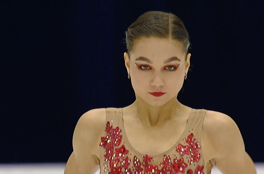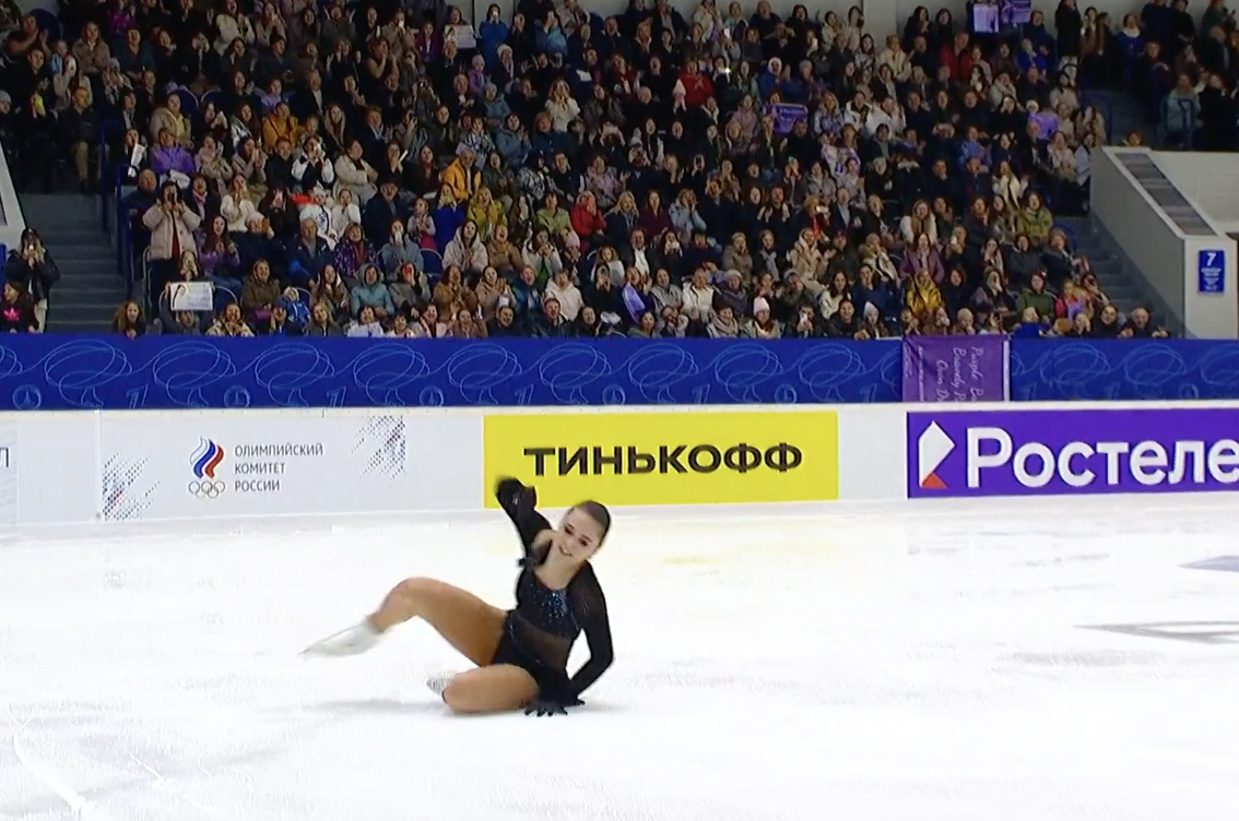 Стоит отметить, что, несмотря на травму, в концовке она смогла более-менее исполнить тройной лутц и двойной аксель.