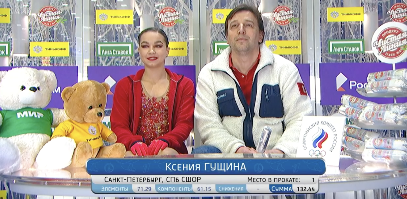 Гущина получила за произвольную программу 132,44 балла, а в сумме — 190,78. Это промежуточное первое место!