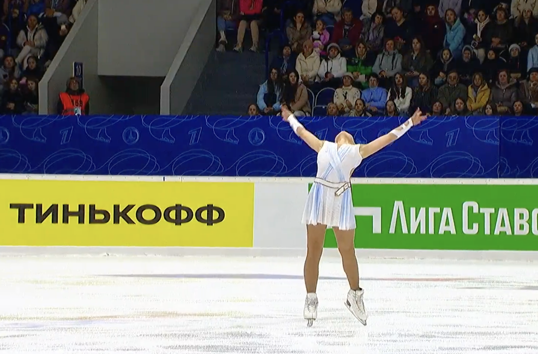 К счастью, на других прыжках Синицына не допустила ошибок — чисто сделала двойной аксель, тройной сальхов, двойной аксель, тройной флип, а также каскады тройной лутц + тройной тулуп и тройной флип + двойной тулуп + двойной риттбергер во второй половине программы, за что получит +10% к их базовой стоимости.