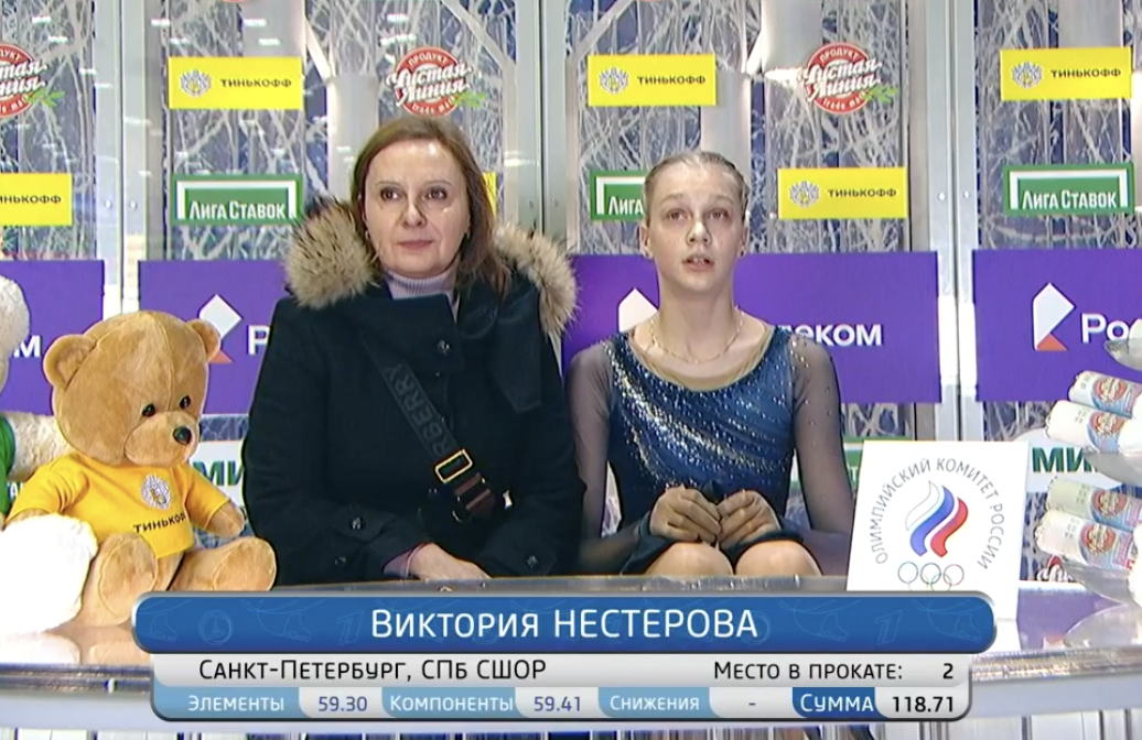 Сразу после этого Нестерова сделала непростой каскад тройной лутц + двойной тулуп + двойной риттбергер, а потом тройной риттбергер + двойной тулуп.