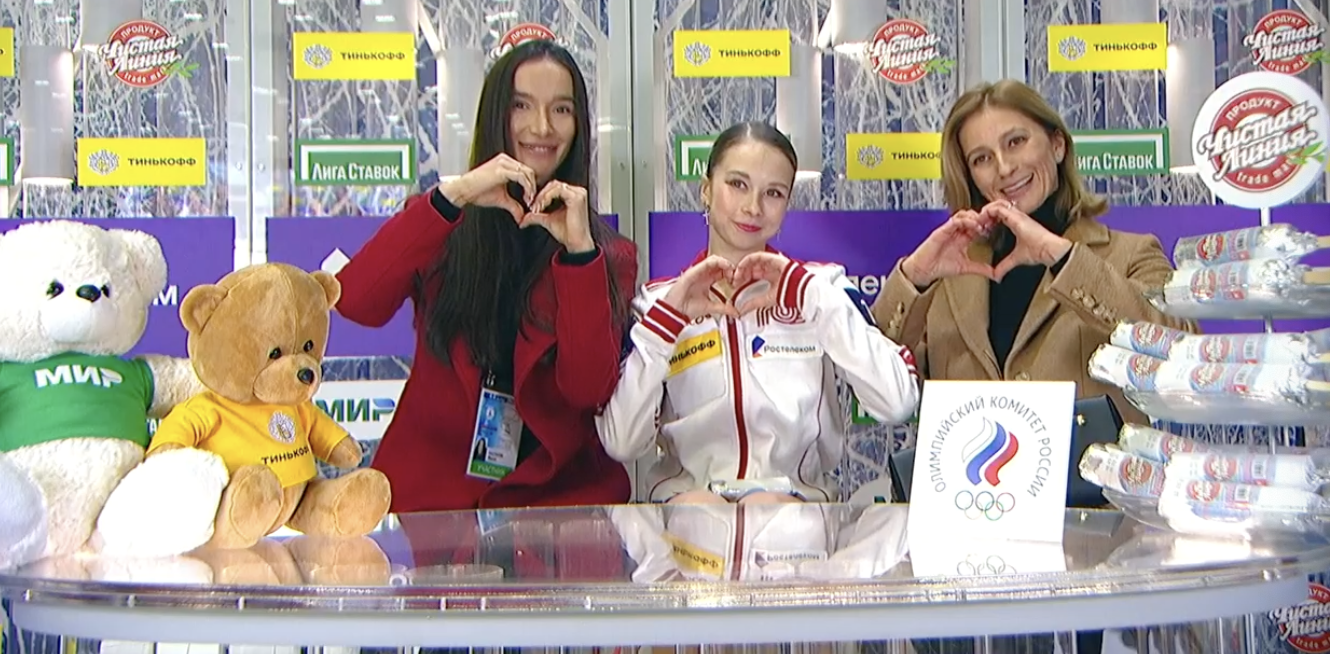 Камера выхватила на трибунах певца Ваню Дмитриенко — друга Валиевой, который даже снял фигуристку в своем клипе.