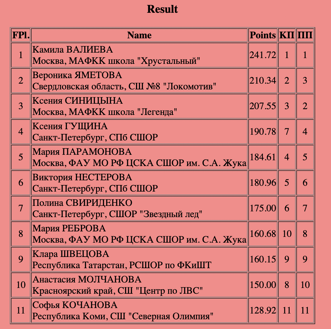 Валиева получила за произвольную программу 158,42 балла, а в сумме — 241,72. С падением и без элементов ультра-си фигуристка привезла больше 30 баллов своим соперницам, которые показали идентичный контент и не упали.