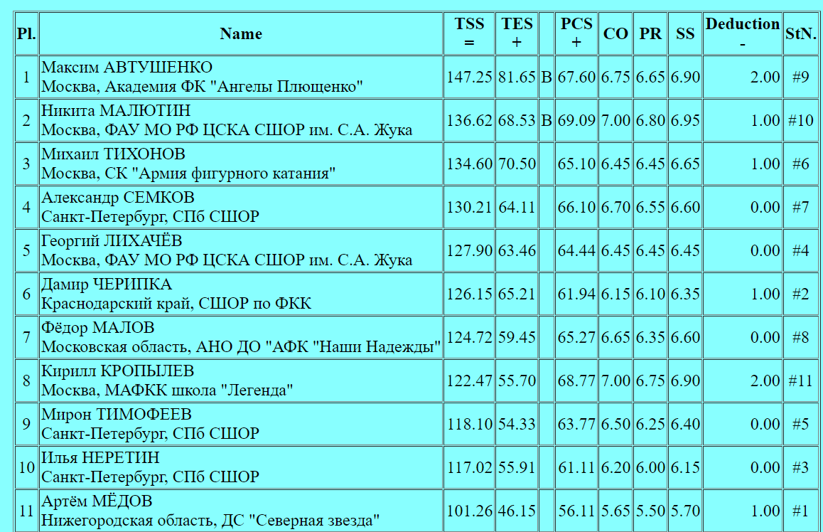 Каскад тройной сальхов + ойлер + тройной сальхов! Сделано чисто! Следом сразу же прыгает фигурист чистый тройной аксель, а потом и тройной флип. Покоряется Автушенко и риттбергер в три оборота. Комбинированные вращения набирают третий уровень. А вот с четверного сальхова в сольном исполнении происходит обидное падение, однако следом чисто прыгает фигурист каскад тройной аксель + тройной тулуп. С каскадом тройной лутц + двойной аксель тоже проблем не возникает. Очень достойное выступление, практически со всем справился Автушенко в своей программе.