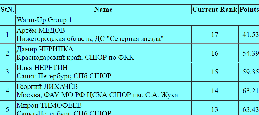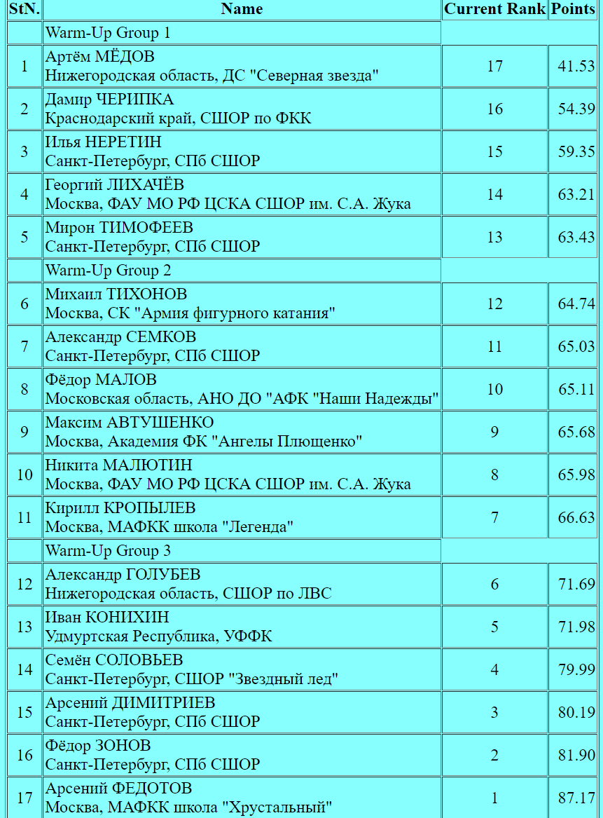 Голубев получает за произвольную программу 117, 31 балла. Это дает ему в общей сумме 189,00 балла.