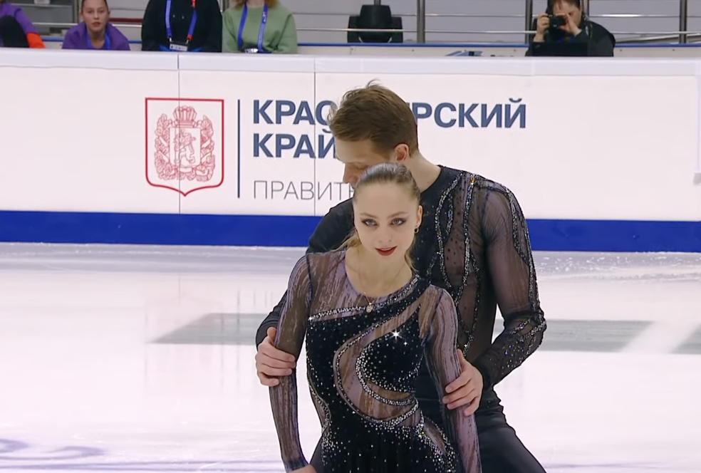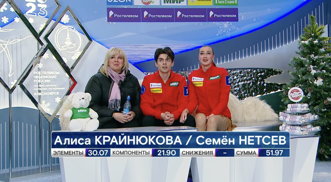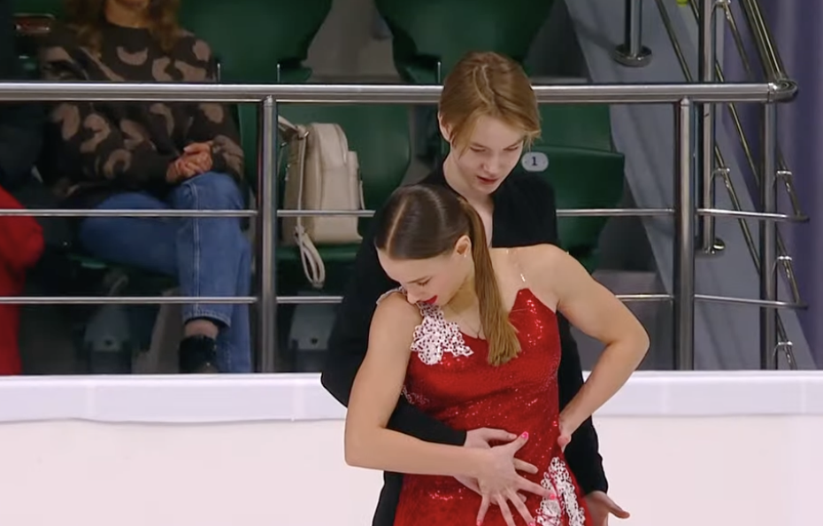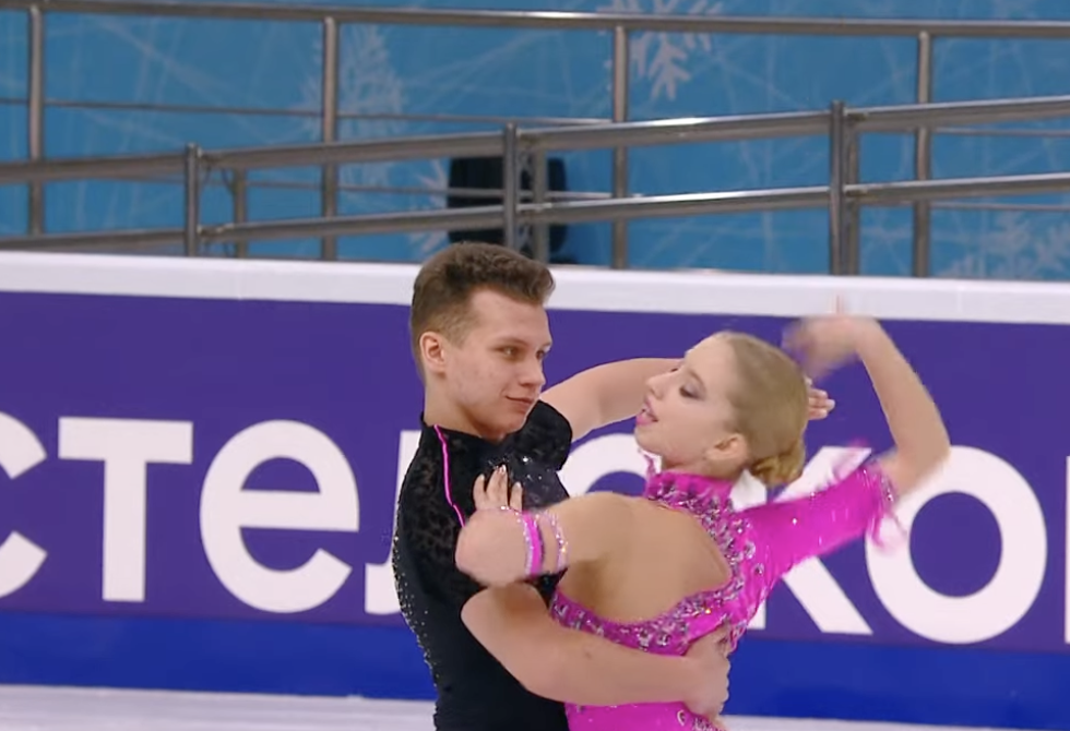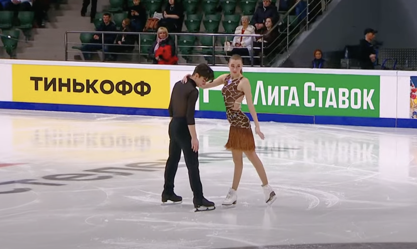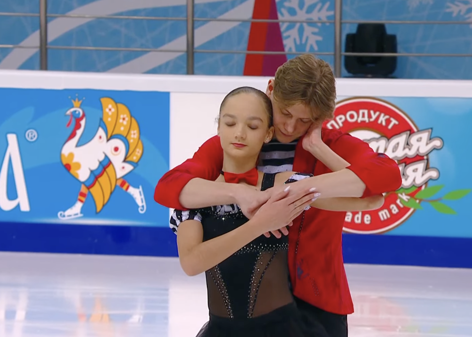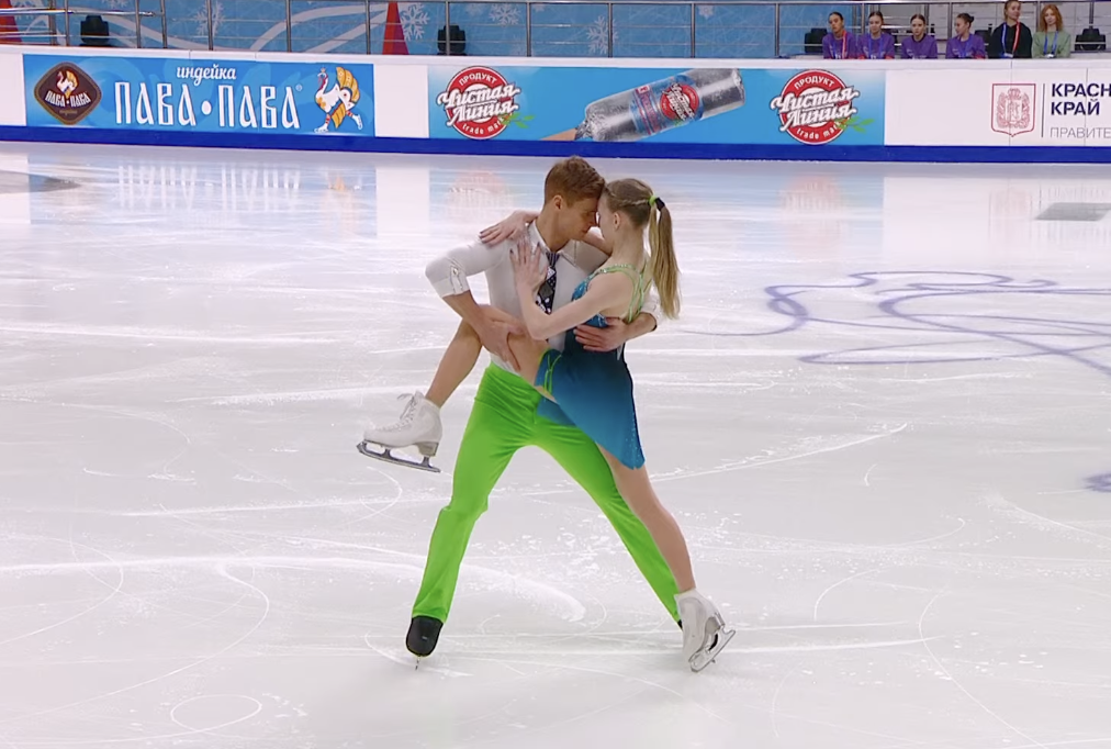 Следующими выступают Алиса Крайнюкова и Семен Нетсев из Ростовской области. Они катаются под Celia Cruz — La Vida Es Un Carnaval.