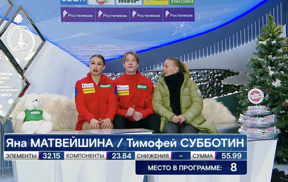 16-летние Матвейшина и Субботин получили за ритм-танец 55,99 балла. Пока это последний результат, но все впереди!
