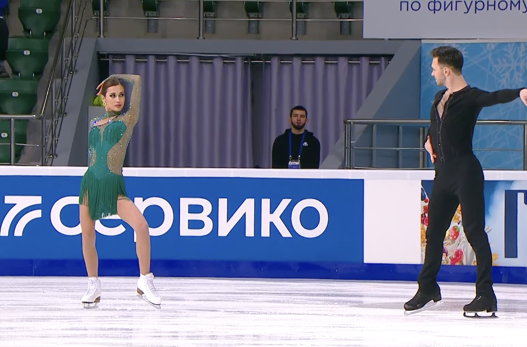 Следующими выступают Екатерина Миронова и Евгений Устенко из Санкт-Петербурга. Они катаются под La Lupe — Puro Teatro.
