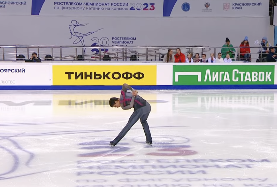 Вот это да! Глеб собрался и выдал сложнейший каскад четверной сальхов + тройной риттбергер! Сегодня это уже точно никто не повторит.