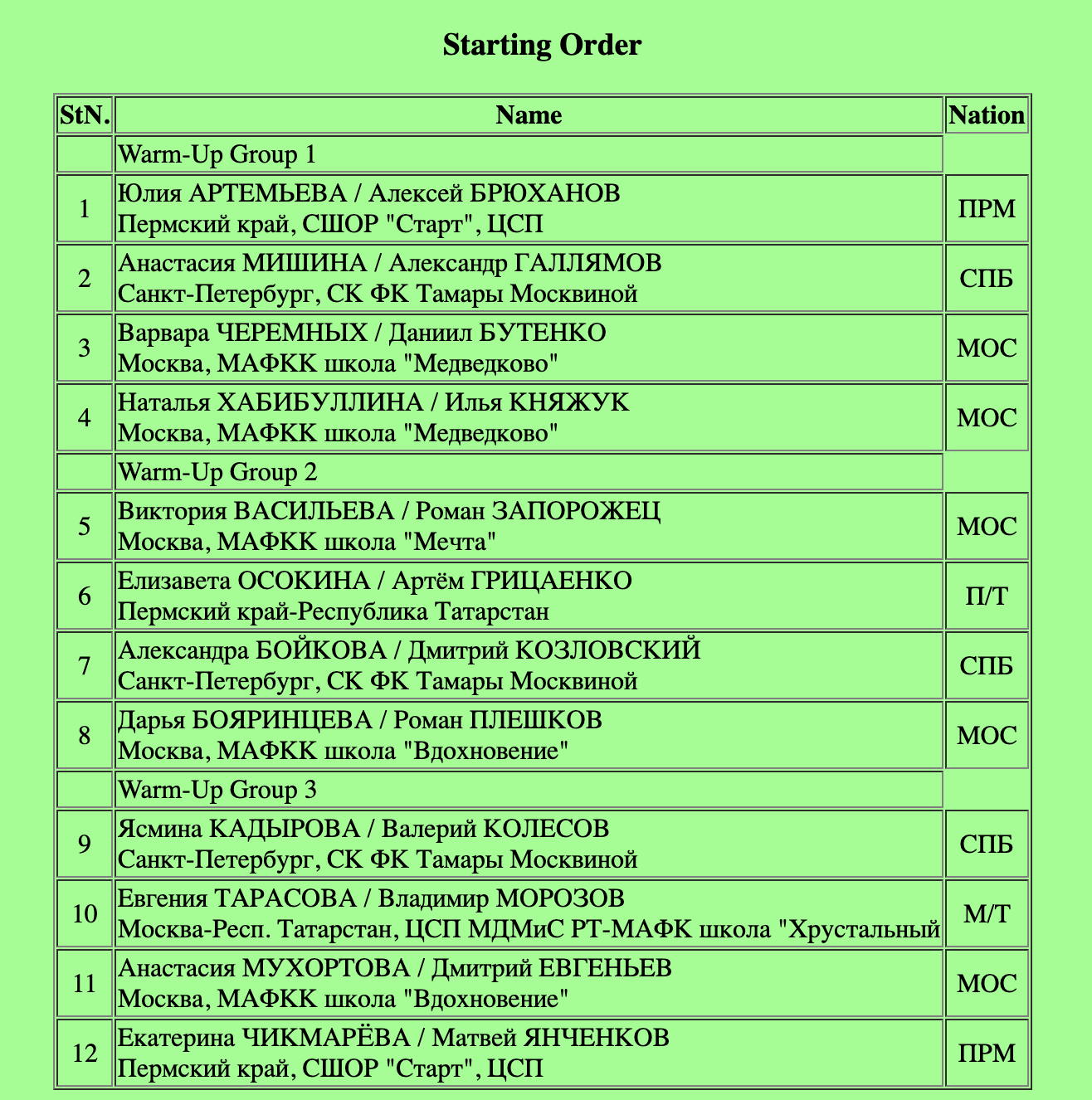 Открывают выступления этой разминки Елизавета Шанаева и Павел Дрозд! Ученики Александра Жулина катаются под Habana 1957, Ritmo de Bom Bom.