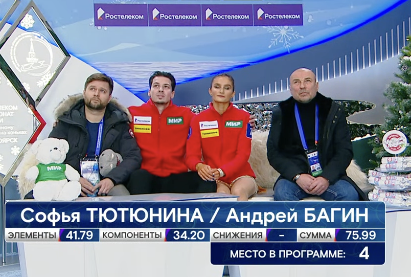 К сожалению, одна из самых ярких пар сезона Василиса Кагановская и Валерий Ангелопол снялись с турнира. Об этом стало известно в ночь перед ритм-танцем. Партнер написал такой пост в своем Telegram-канале (позже информацию подтвердила и Федерация фигурного катания на коньках России):