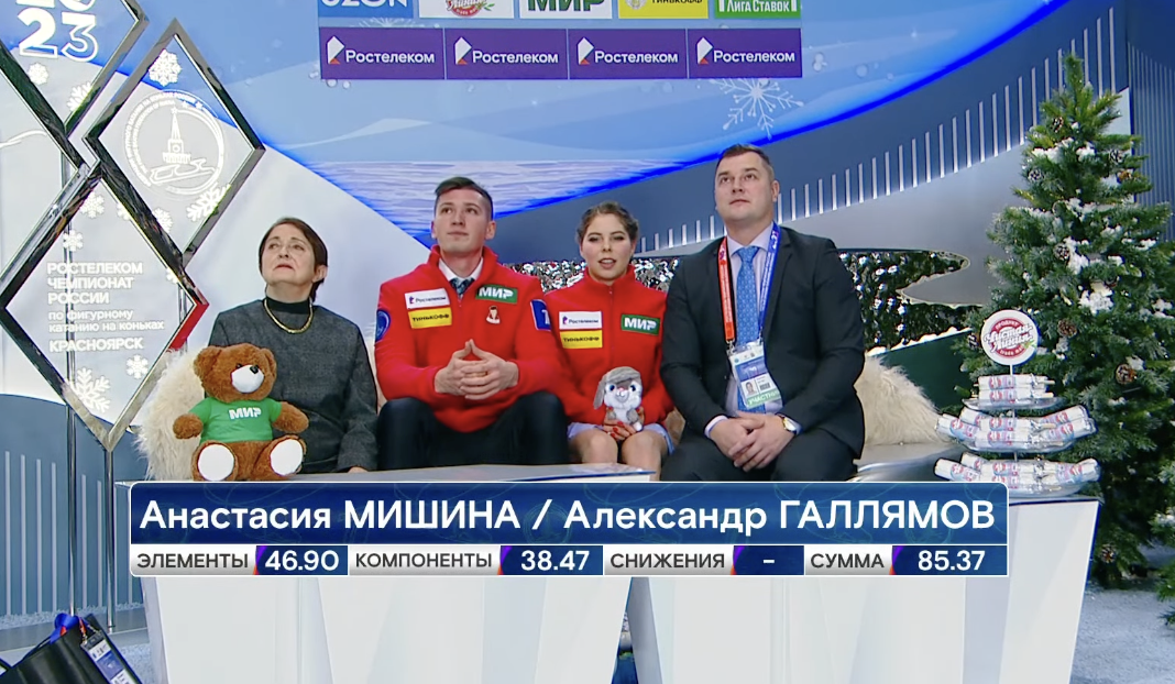 Следующими выступают действующие чемпионы России Анастасия Мишина и Александр Галлямов! Они катаются под Andre Rieu — The Second Waltz.