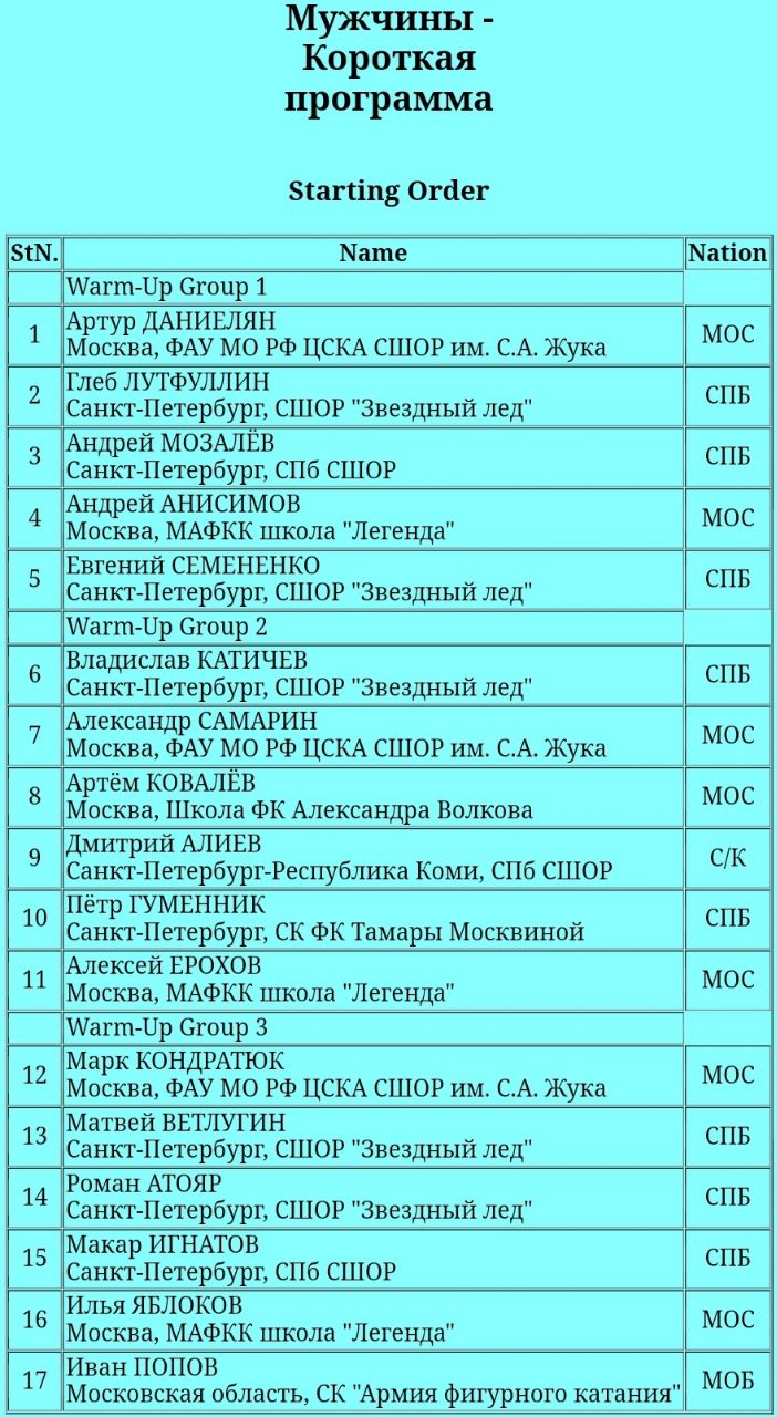 12.15 — мужчины, произвольная программа
