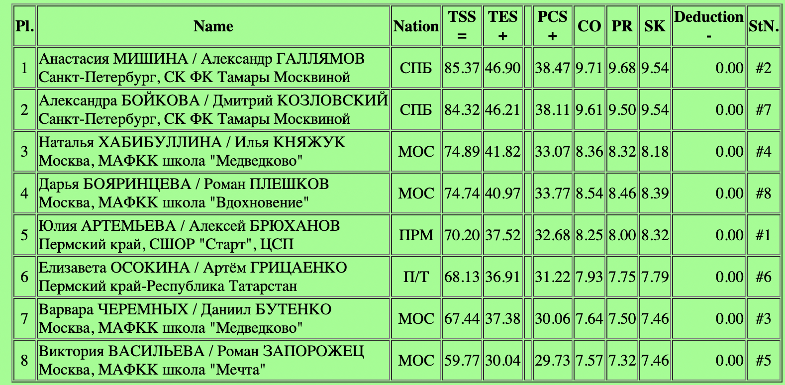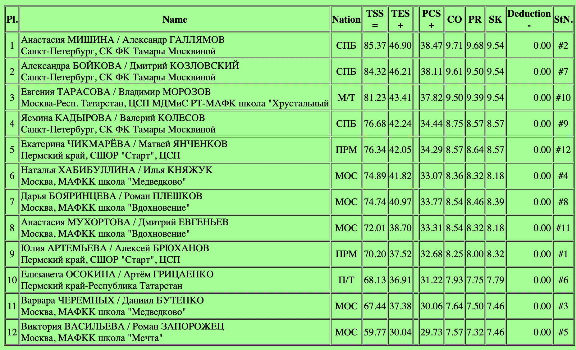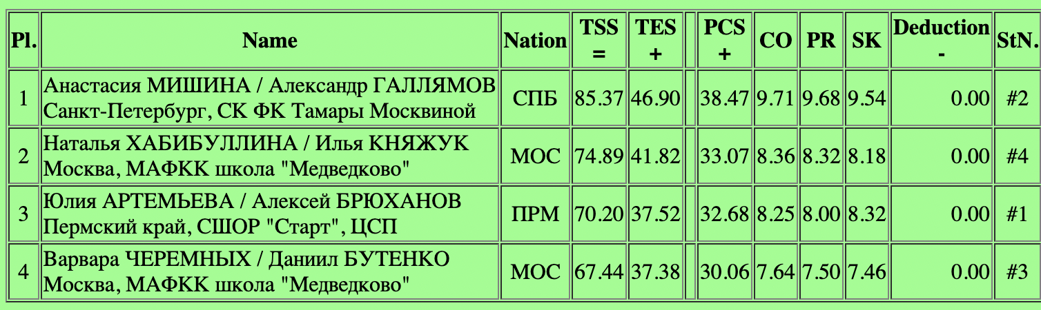 - Анастасия Мишина и Александр Галлямов (85,37)