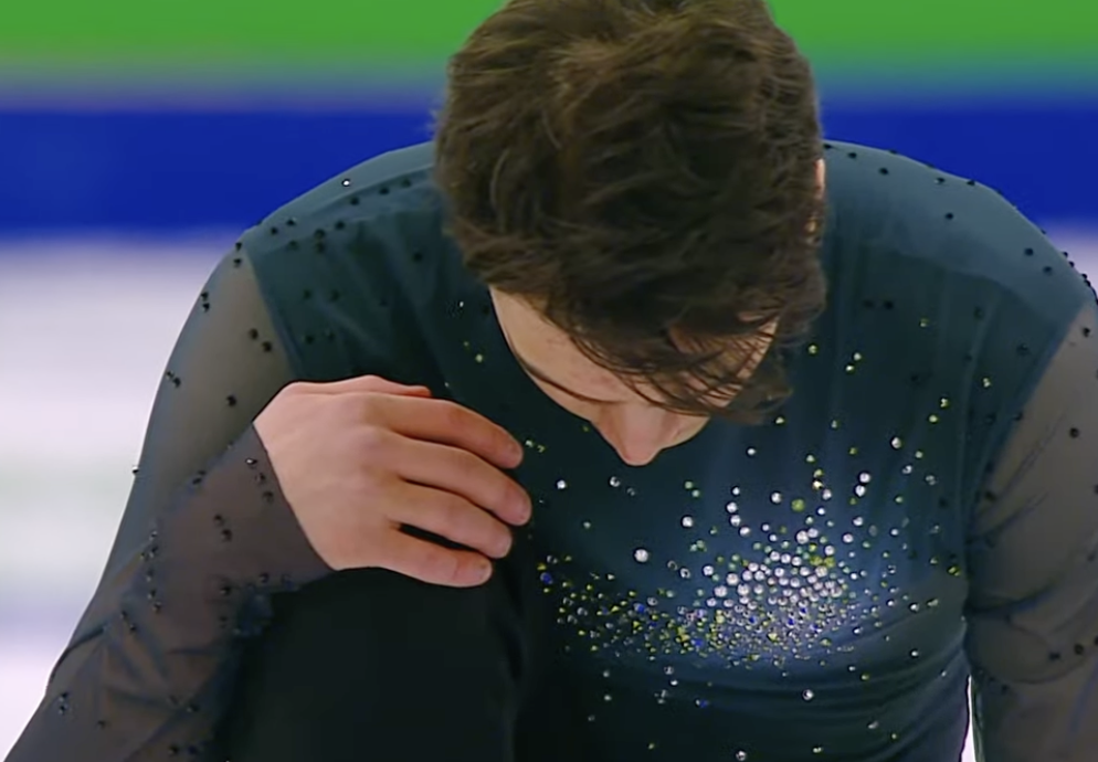 Эх, фигурист все-таки не смог скрутить четверной флип (а это должен был быть самый сложный прыжок в первой разминке среди всех участников) и исполнил только тройной.