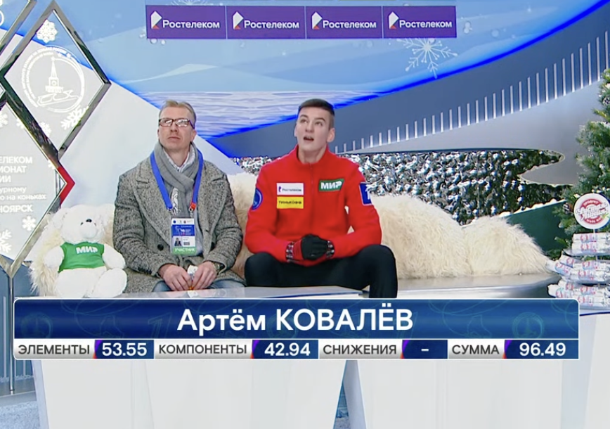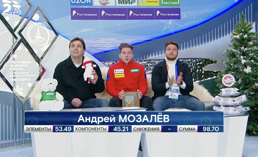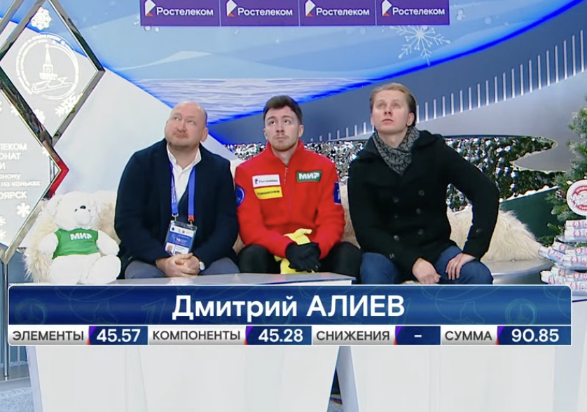 Мозалев получил за короткую программу 98,70 балла. Он становится промежуточным лидером с большим отрывом!