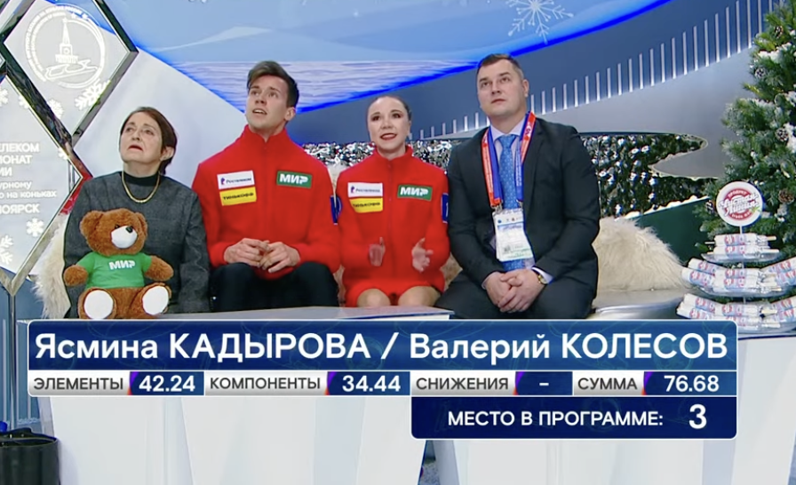 Кадырова и Колесов получили за короткую программу 76,68 балла. Это промежуточное третье место!