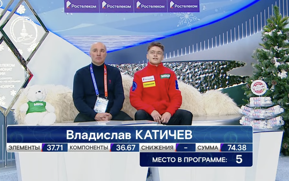 Финальный прыжок — тройной риттбергер — был исполнен чисто. У Катичева пока не тот набор прыжков, чтобы рассчитывать на высокие места даже при чистом исполнении. Но зато падений не было.
