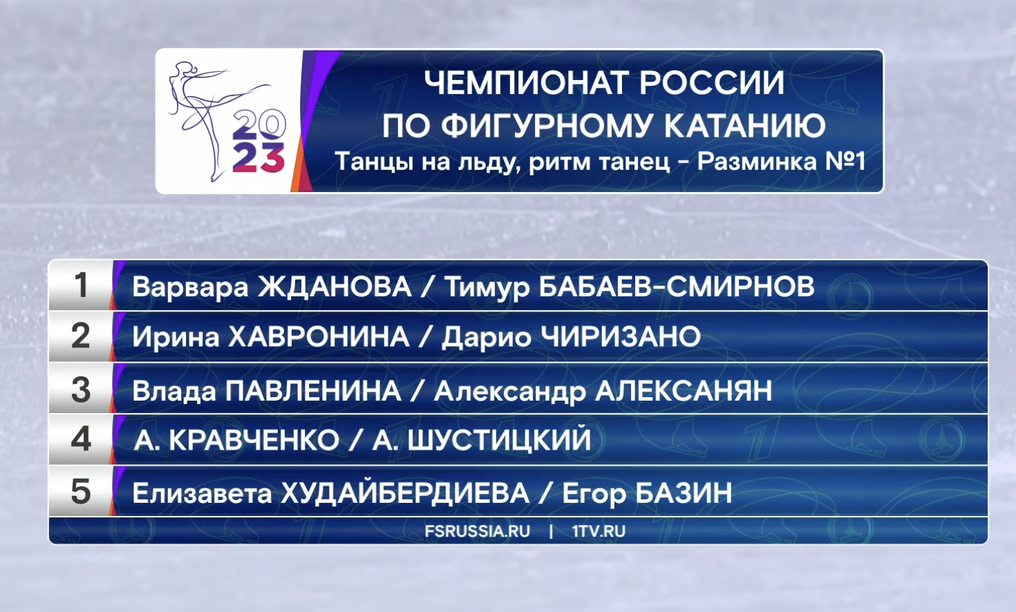 У нас небольшой перерыв на заливку льда, а потом мы увидим выступления заключительной разминки в танцах на льду и узнаем, сместит ли кто-нибудь Худайбердиеву и Базина с первого места.