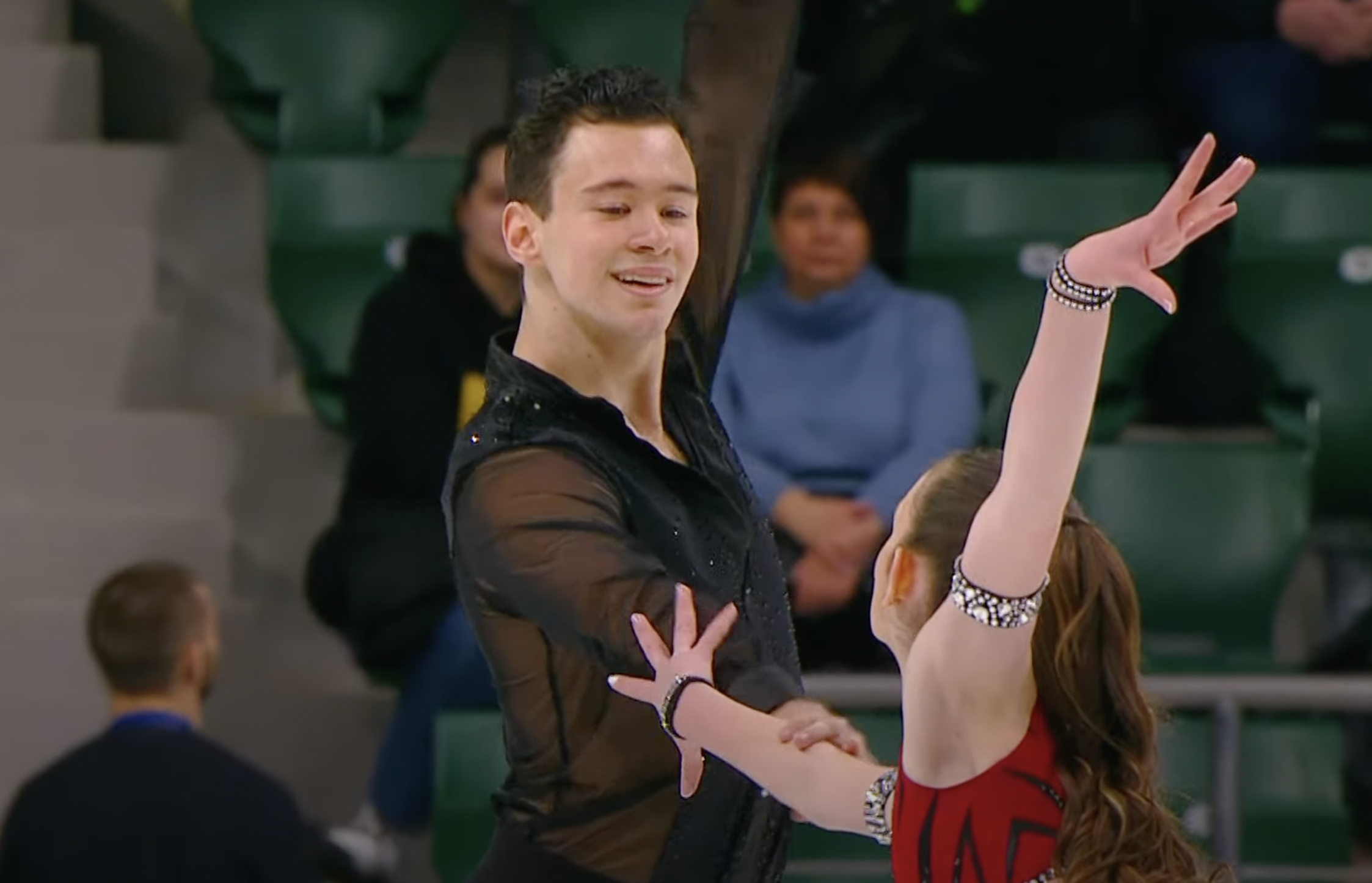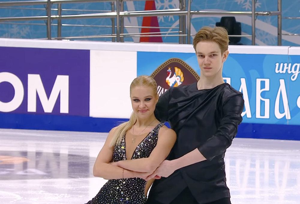 Следующими выступают Елизавета Осокина и Артем Грицаенко, которые представляют Пермский край и Татарстан. Они катаются под Seal — I Put A Spell On You.