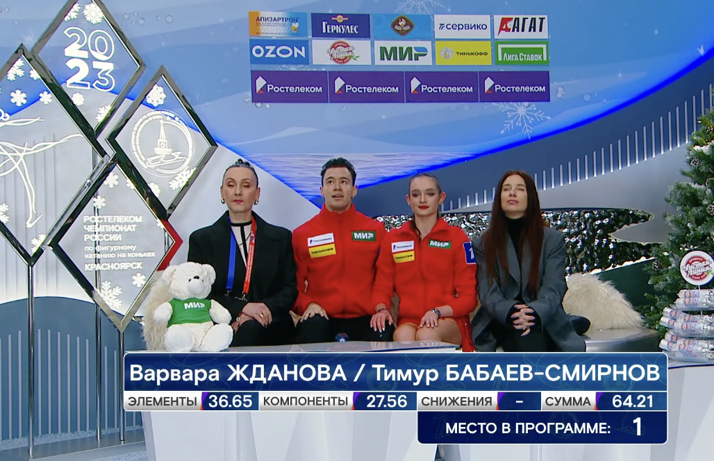 Соревнования начинаются! Первыми на лед выходят Варвара Жданова и Тимур Бабаев-Смирнов из Москвы. Напомним, в ритм-танце этого сезона обязательная тема — латина. Ждем зажигательных программ!