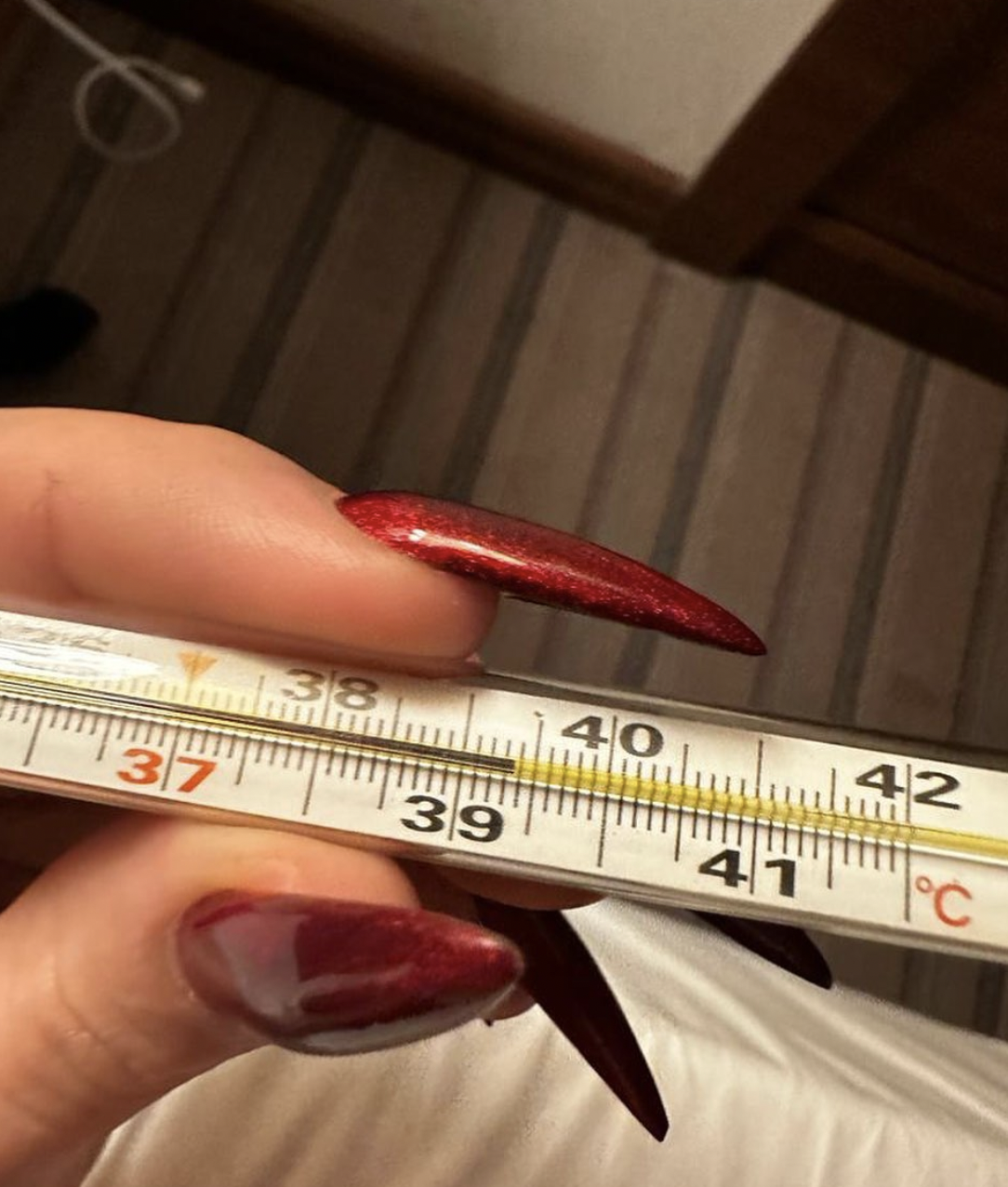 Тренер также выложила к себе в соцсети фото градусника Трусовой, чтобы подтвердить факт высокой температуры у спортсменки.