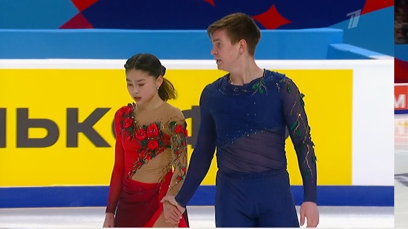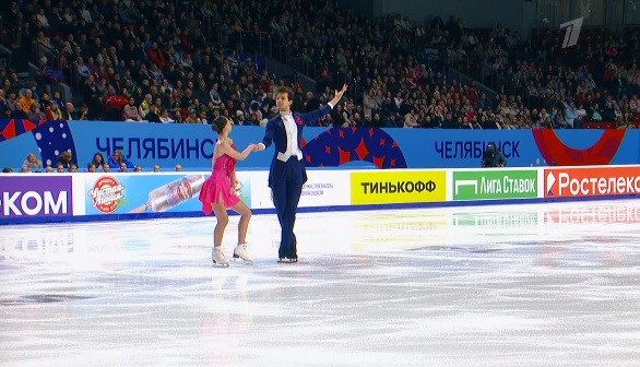 Но теперь лидеры и главные фавориты — Анастасия Мишина и Александр Галлямов. Это последнее выступление в этих соревнованиях.