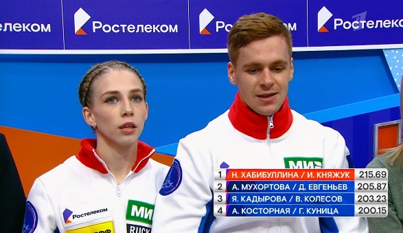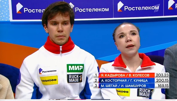 Вот и результат. Не смогли Кадырова и Колесов обойти Косторную и Куницу в произвольной программе, но по сумме выиграли.