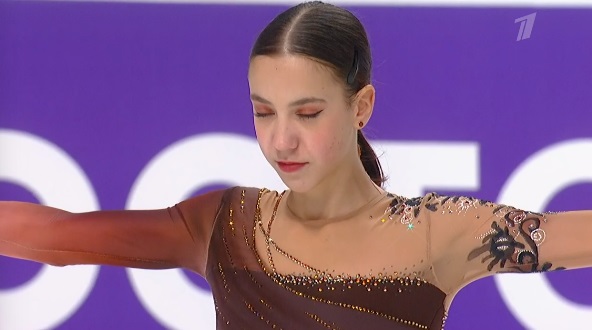 Сразу упала с четверного флипа. Но сделала каскад 4 тулуп + 2 тулуп, а потом четверной тулуп сольно! Дальше еще тройной сальхов чисто и вращение четвертого уровня. Дорожка шагов тоже четвертого уровня. Потом секвенция 3 лутц + два двойных акселя, каскад 3 флип + 3 тулуп. Это все чисто. Как и сольный тройной флип. Ну и завершили все вращения четвертого уровня. Даже с учетом падения с четверного флипа на старте программы это был очень сильный прокат подопечной Этери Тутберидзе! Должна выйти на первую строчку!