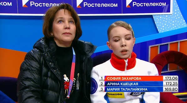Захарова показывает третий на данный момент результат в произвольной программе, но первый по сумме.