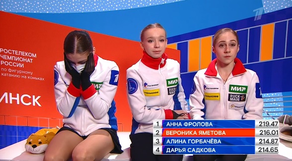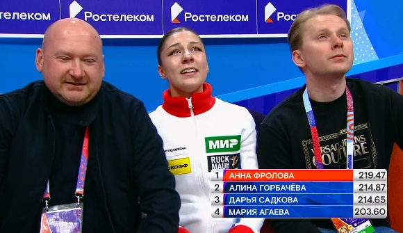 В итоге Фролова показывает в моменте второй результат в произвольной программе, а по сумме становится первой.