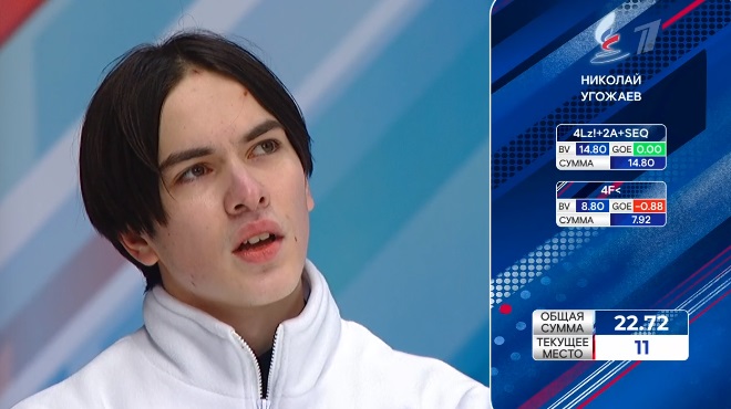Сильно недокрут флипа сказался на результате. Пока 11-е место, но сдвинут Угожаева мимо финала.