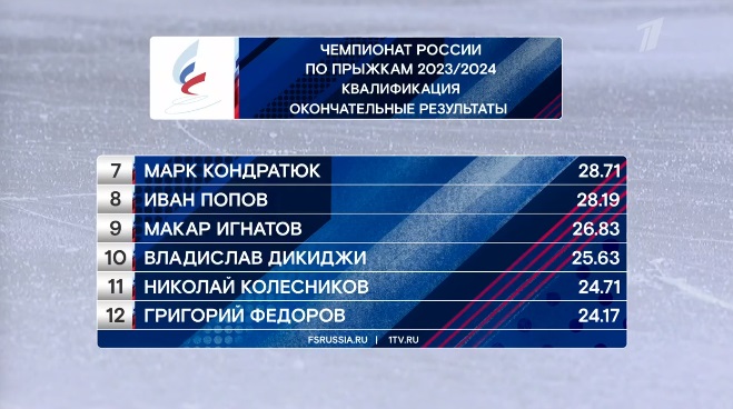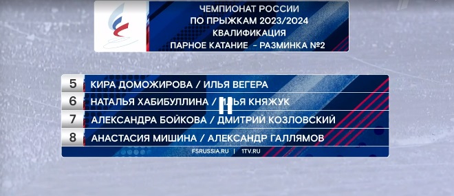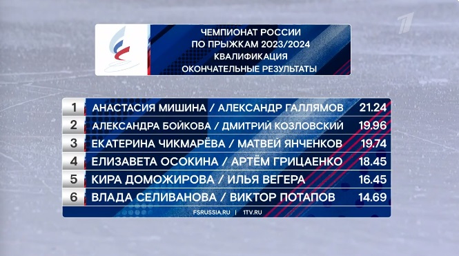 Вот результаты квалификации пар. Теперь подготовка льда, и дальше квалификационный турнир мужчин. Там будет 30 участников, из которых 12 пройдут в финал.