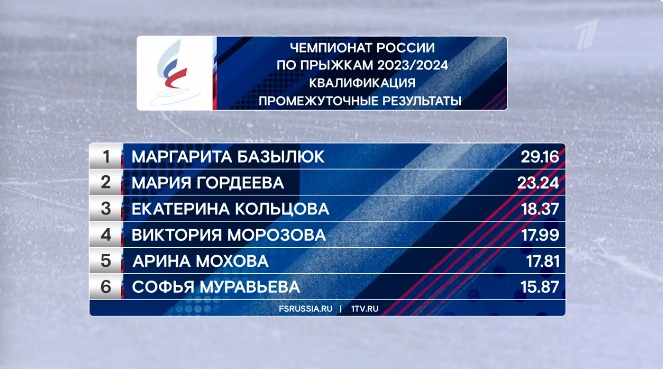 Положение в турнире после двух групп участниц. Впереди подготовка льда, после чего выступят еще 13 спортсменок.