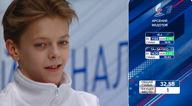 Ученик Этери Тутберидзе Арсений Федотов сразу сделал идеальный четверной лутц. Дальше не очень получился каскад из двух тройных акселей, но он его повторил, и успешно!