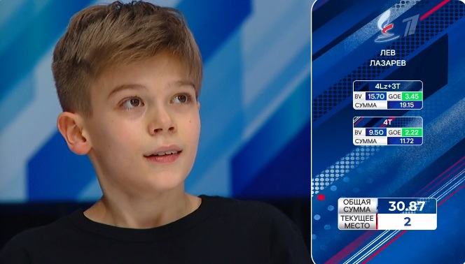 Юный Лев Лазарев делает 4 лутц + 3 тулуп. И дальше сольный четверной тулуп! И все чисто! Еще было время, и Лев попытался четверной флип исполнить, пусть и упал.