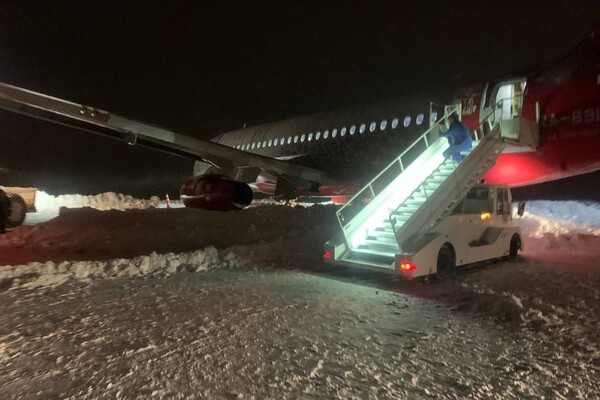 Российские фигуристы прилетели в Мордовию. Их Superjet выкатился в сугроб