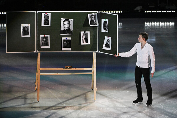 — Когда поняли, что будут «Журавли», что-то попробовал Никита Михайлов с Женей на льду, стали думать про концепцию. Это было как раз между льдами, мы сидели с Никитой вдвоем в телефонах, искали все исполнения. Ледовые постановки Никита наверняка знает — возможно, смотрел, мы искали клипы, интерпретации, разные исполнения. Сидели и набрасывали идеи — что-то он предложил, что-то я, «а давайте крылья вырастут», «фотографии полетят». Они в итоге не полетели, но из других идей и сложился номер.