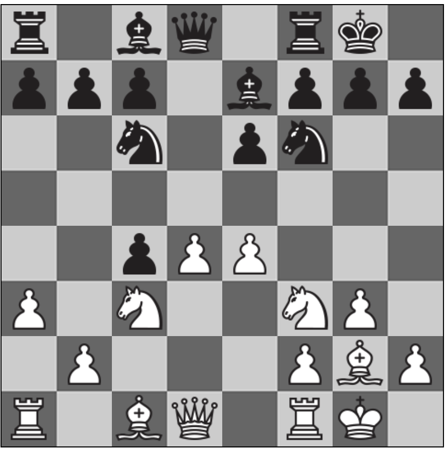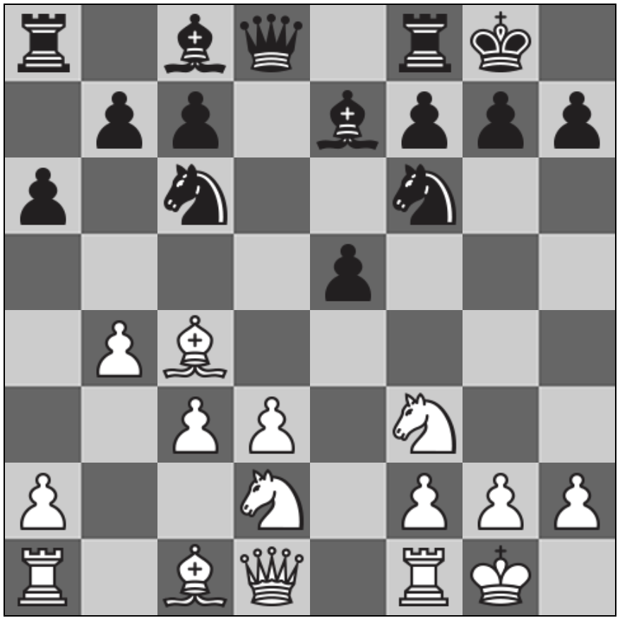Ферзя на d8 уводит Алиреза, Ян в ответ пытается захватить пространство на ферзевом фланге. 7.exd5 Qxd5 8.Bc4 Qd8 9.b4 Be7.
