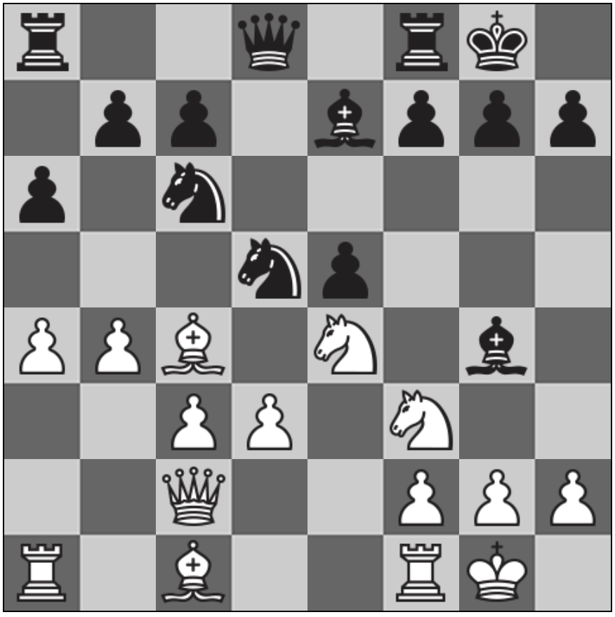Долгие раздумья Фируджи позволяют нам проверить, как дела в партии Прагнанандха — Доммараджу. Там также неторопливый дебют: 1.d4 d5 2.c4 e6 3.Nf3 Nf6 4.g3 Bb4+ 5.Nc3 dxc4 6.Bg2 0-0 7.0-0 Nc6 8.a3 Be7 9.e4.