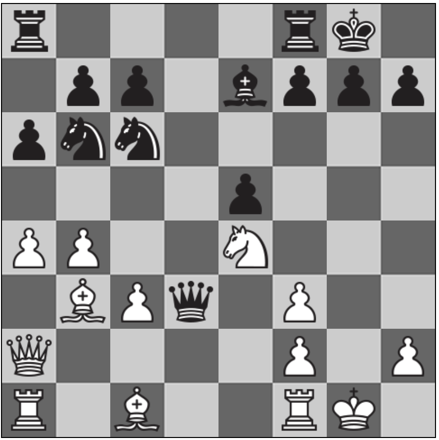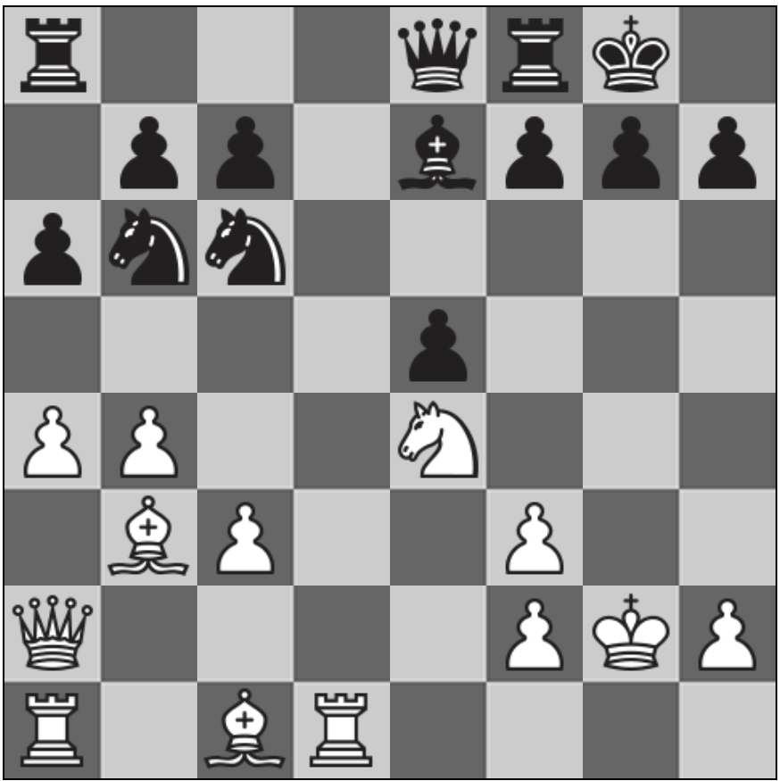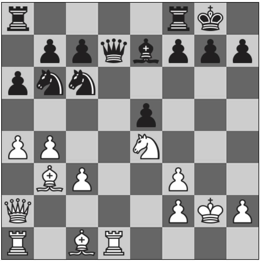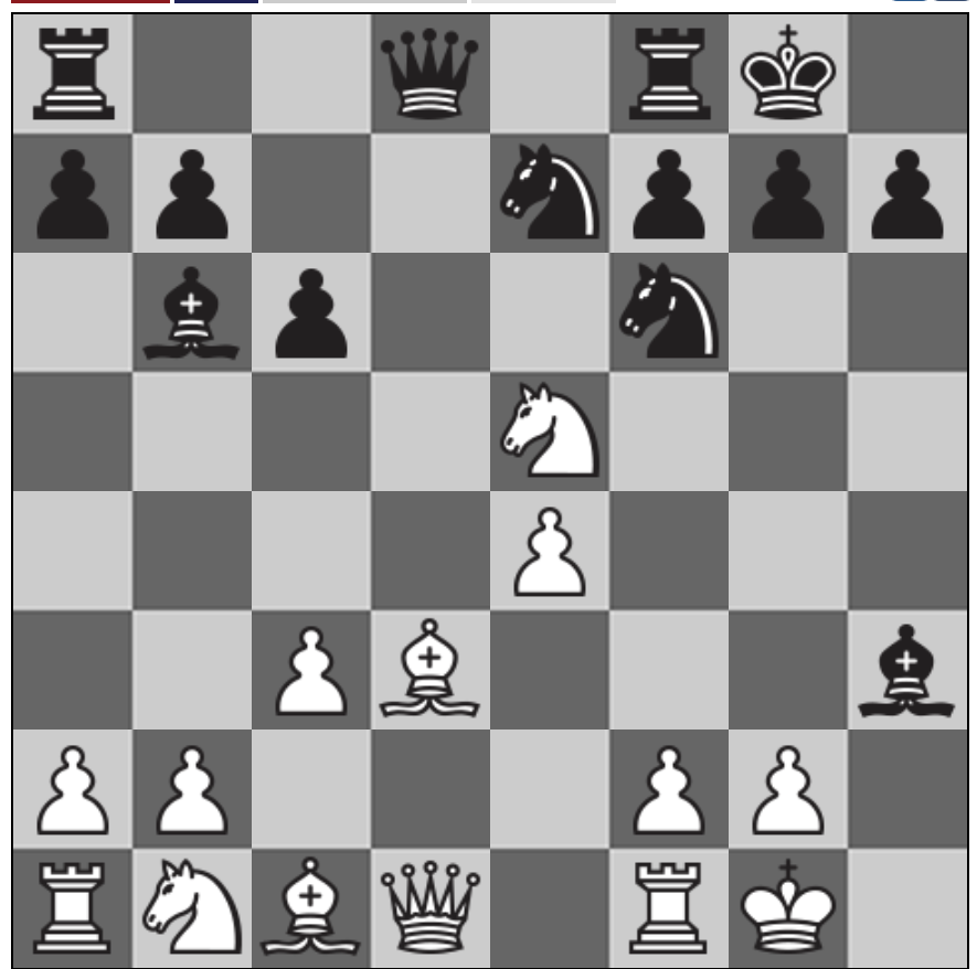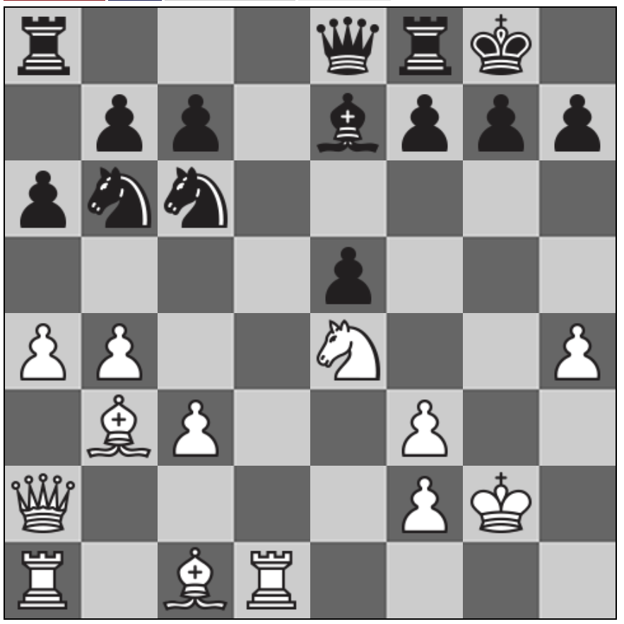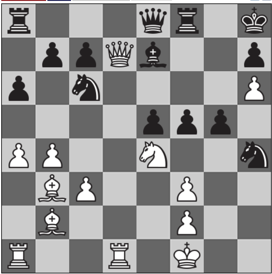 Пытаются соперники подловить друг друга на ошибке. Француз предложил Яну размен на f3, россиянин принял это предложение. 14.Qa2 Nb6 15.Bb3 Bxf3 16.gxf3 Qxd3.