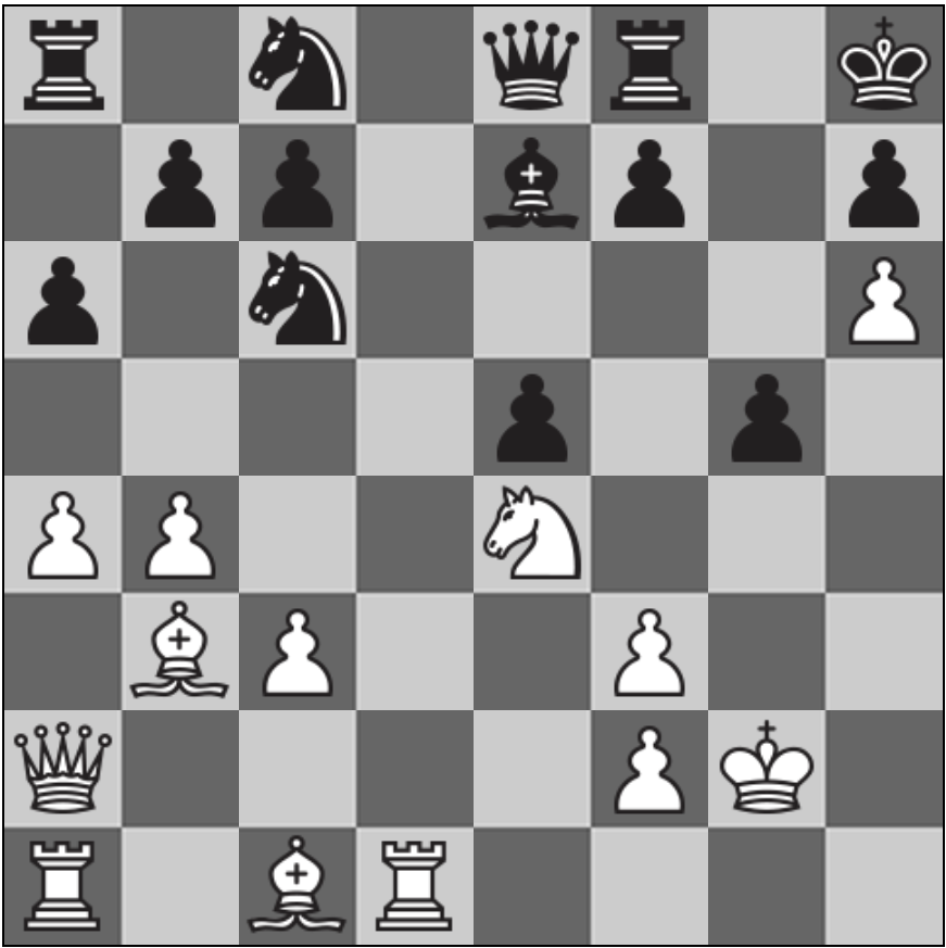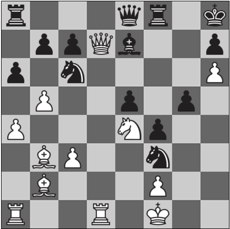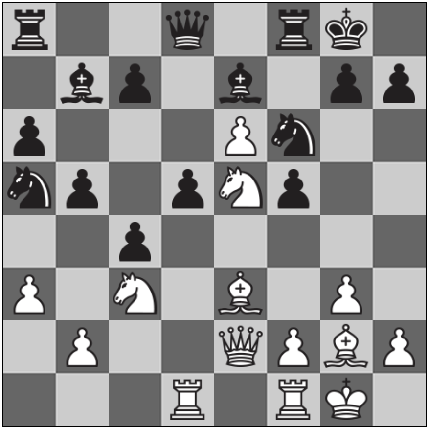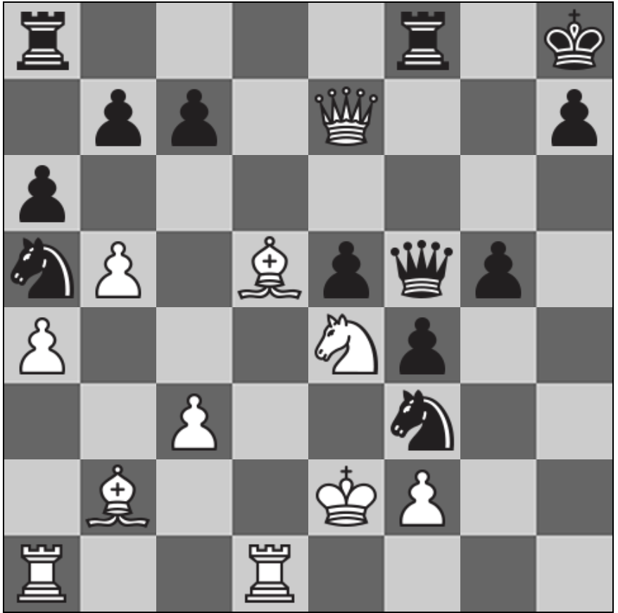 Ян продолжает игру пешкой на h5. Не очень понятное решение, теперь компьютер дает преимущество Фирудже — но пока небольшое.