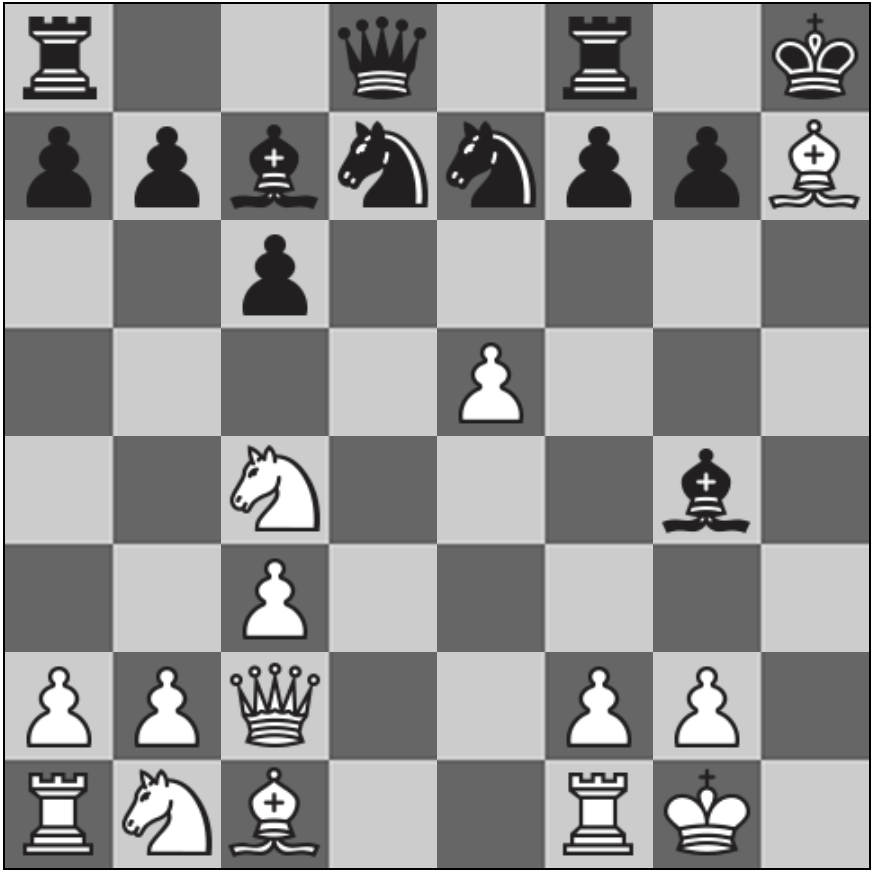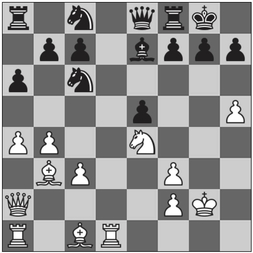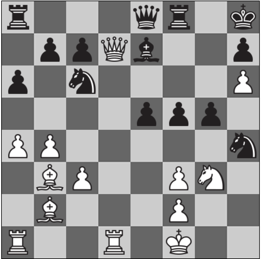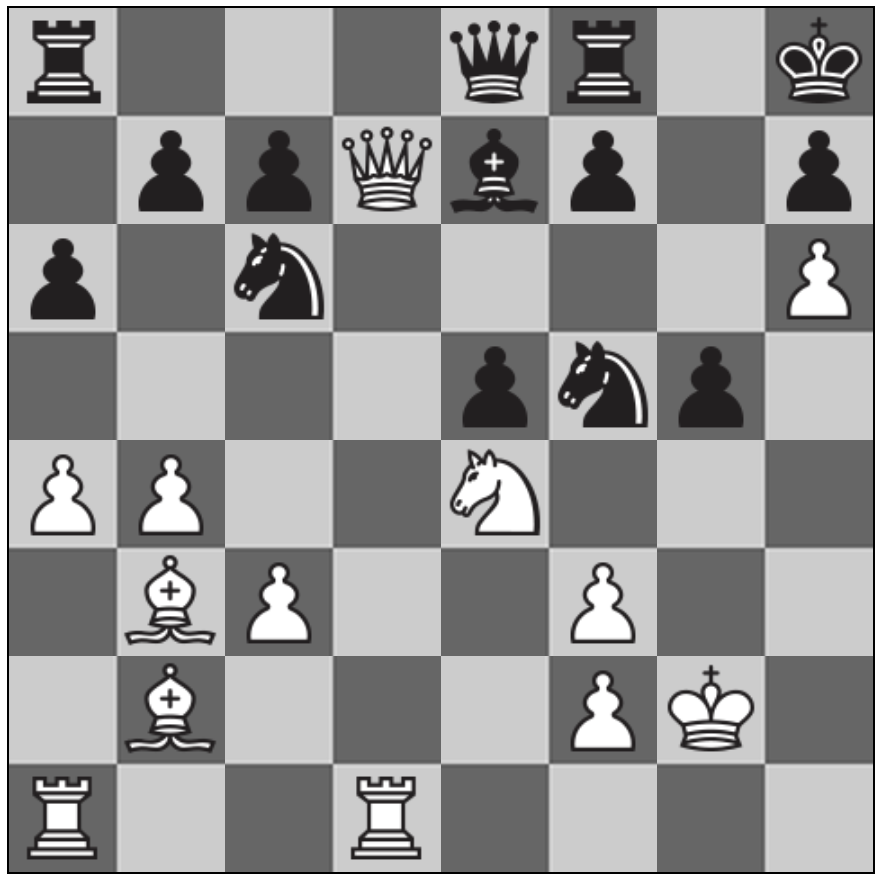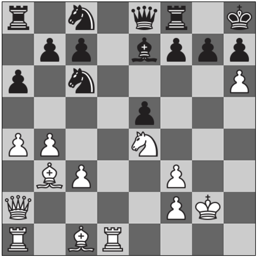 Ян продолжает игру пешкой на h5. Не очень понятное решение, теперь компьютер дает преимущество Фирудже — но пока небольшое.